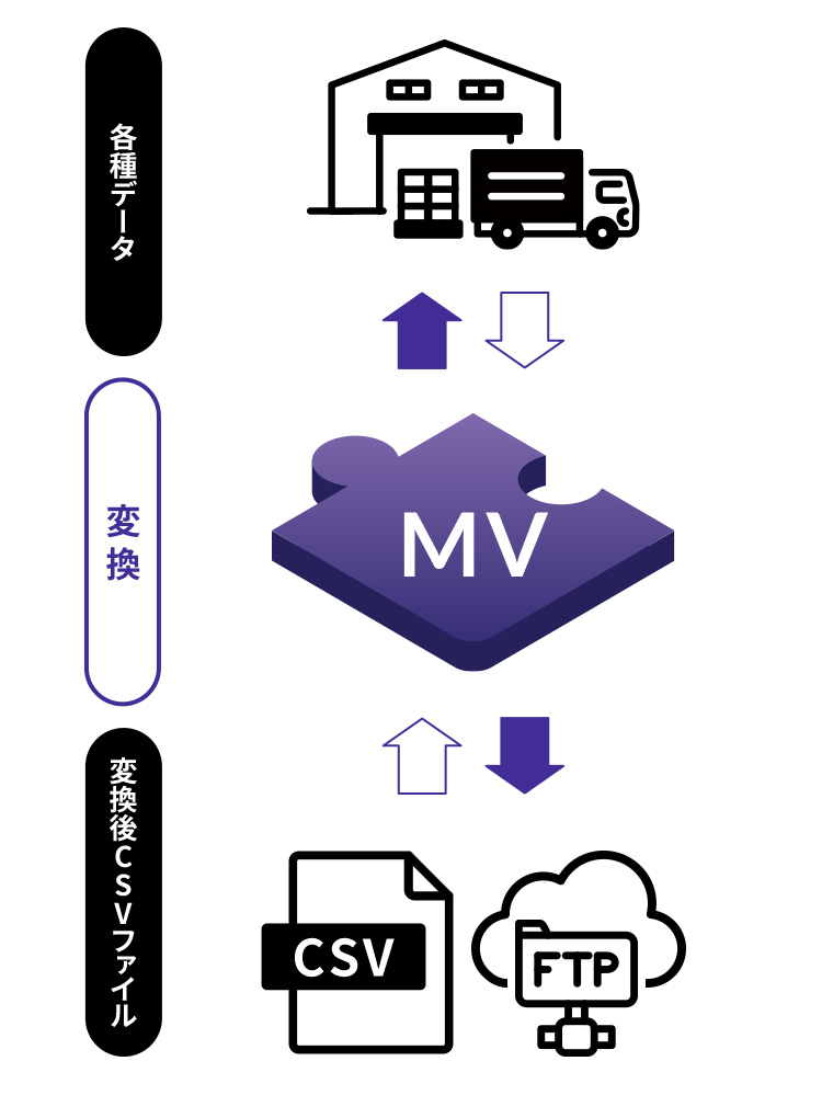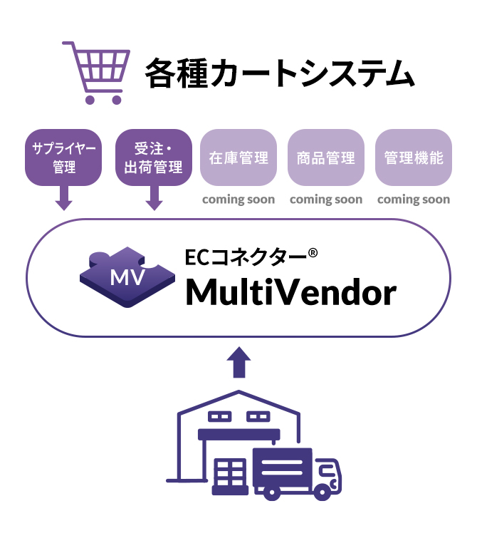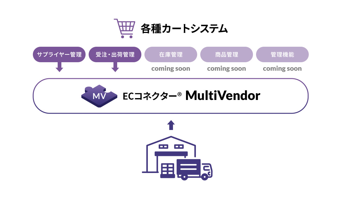 サプライヤー管理・管理機能、受注/出荷済み・在庫・商品データなどの変換機能を実装し、